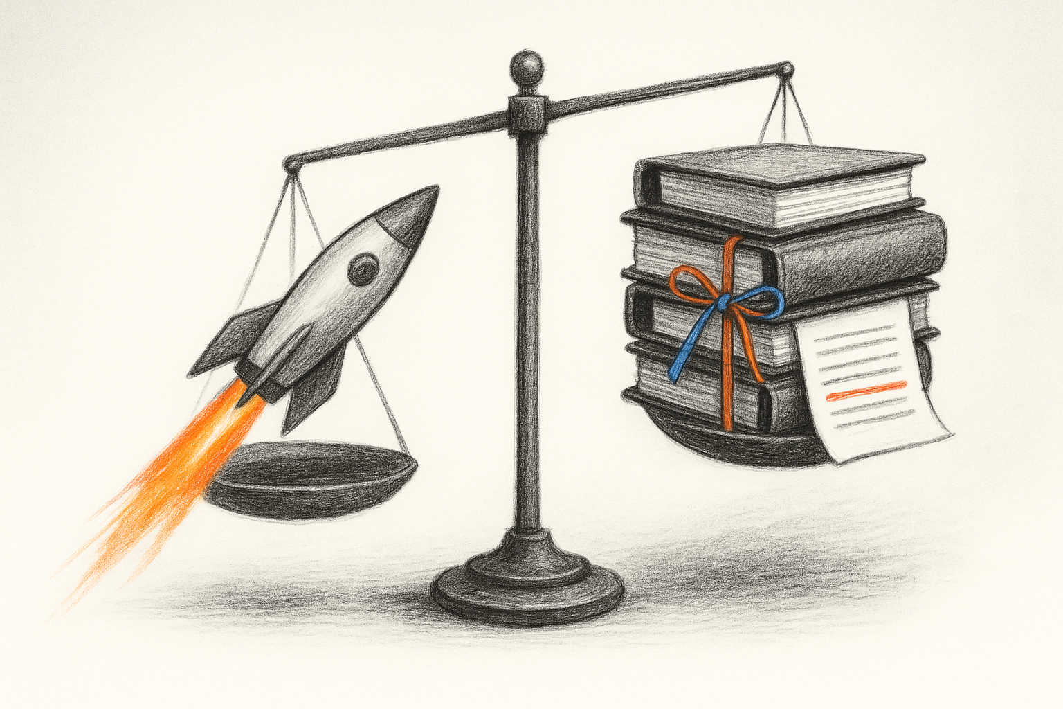Why startups shouldn't worry about technical debt, feature parity, or balance.